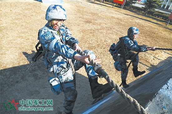 該部組織翻越高墻訓練,提升官兵腿部和手臂力量。