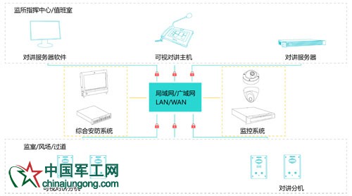監管:主機可部署于看守所/監獄指揮中心,各廠房、車間、監舍、醫院、食堂、風場等區域可配備對講分機;實現對異常犯情進行實時監聽監視,大幅提高監所安全防范水平。