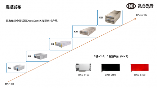 5月9日,容芯致遠聯合中國開放指令生態(RISC-V)聯盟在北京宣布成立RISC-V國產智算體系結構創新專業組,現場300多人參與會議。容芯致遠一舉發布5款采用AGC架構設計的智算新品,從支持雙卡到支持20卡不等,成為全球首家單機全面適配DeepSeek各模型尺寸產品的企業。