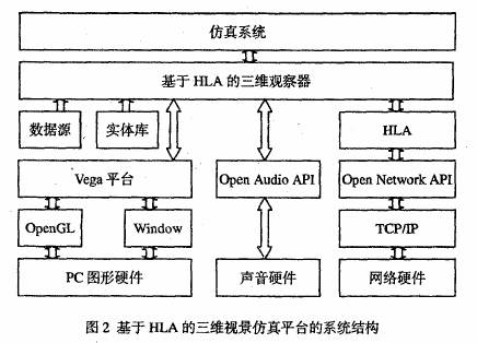 高層體系結構川.A是新一代仿真系統的標準,本系統也將采用HI.A接口來實現和仿真系統的互連?;贖LA的三維視景仿真系統將設計成整個系統仿真聯邦中的一個三維可視化顯示的聯邦成員,以實現互操作與可重用。