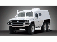 該車總重8.6噸,采用長頭駕駛室,承載式防彈車身,可搭載國產(chǎn)150kW或136kW柴油共軌電噴發(fā)動(dòng)機(jī),也可搭載進(jìn)口160kW斯太爾柴油機(jī),配有非獨(dú)立懸架門式橋,變剛度大行程螺旋彈簧,采用全時(shí)全輪驅(qū)動(dòng),裝有軸間和輪間差速器和差速鎖,并裝備有中央充放氣系統(tǒng),氣頂油盤式制動(dòng)器。