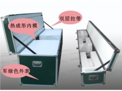 軍用航空箱、鋁合金箱系列:由高強度平板外貼工程ABS板,PBS防火板、鋁板、不銹鋼板高壓合成箱體結構,箱體結構的各邊采用一定厚度和強度的鋁合金型材,箱體每一個角用高強度的球形包角與L型鋁合金邊和板連接固定,可以根據客戶選擇加腳輪;內部結構:箱體可以根據產品特點設計隔層,箱體內側和隔板貼上比較柔軟的EVA或IXPE防震材料,該材料具有量輕、保溫、防震、防潮、抗氧化、密封、功能。