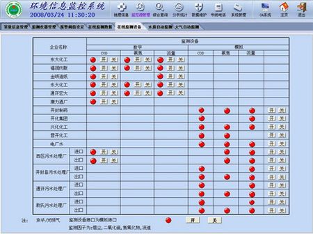 1)在線監(jiān)測(cè)和遠(yuǎn)程控制可以在線查看、查詢、獲取各種模擬設(shè)備和開(kāi)關(guān)的最新數(shù)據(jù)、狀況。并可以實(shí)現(xiàn)定時(shí)監(jiān)測(cè)(TOC、COD、PH、流量等一次性儀表在一段時(shí)間內(nèi),按照固定的周期進(jìn)行數(shù)據(jù)采集)。中心控制室可以實(shí)時(shí)顯示水污染點(diǎn)源的①污水瞬時(shí)流量和累積流量②COD或氨氮的濃度和排放總量等數(shù)據(jù),能夠?qū)ΡO(jiān)測(cè)現(xiàn)場(chǎng)設(shè)備進(jìn)行遠(yuǎn)程啟動(dòng)、設(shè)定工作時(shí)間、調(diào)整工作周期、數(shù)據(jù)二次查詢等遠(yuǎn)程操作,并將分析結(jié)果和設(shè)備運(yùn)行日志記錄于環(huán)保局中心數(shù)據(jù)中。中心控制室可以實(shí)時(shí)顯示大氣污染點(diǎn)源的①煙氣流量和排放總量②煙氣、煙塵、CO、SO2、Nox的濃度和排放總量等數(shù)據(jù)。