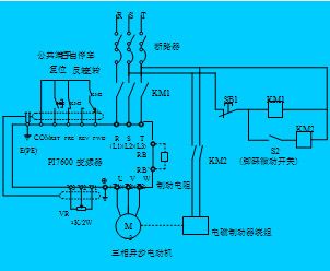 采用 PI7600系列變頻器使電磁制動三相異步電動機變頻調速可以實現上述的工藝要求。