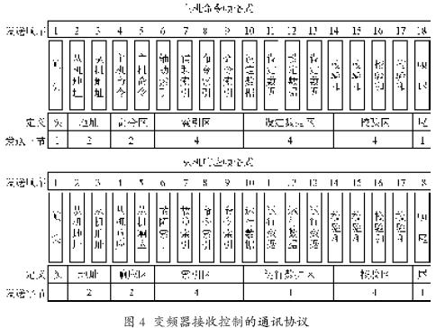 其中需要注意的是從機的地址及相應的校驗和。速度閉環給定指的就是工藝更改時,根據基準速度和各軸的牽伸比算出各軸的目標轉速并發給相應的變頻器。無單位顯示量指的是讀相應地址變頻器的實際反饋轉速。設計中須用到具體操作命令的通訊協議如表1所列。