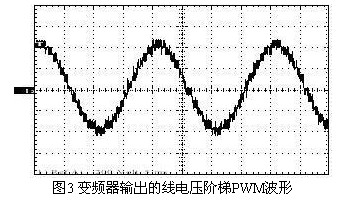 輸出側由每個單元的U、V輸出端子相互串接而成星型接法給電機供電,通過對每個單元的PWM波形進行重組,可得到如圖3所示的階梯PWM波形。這種波形正弦度好,dv/dt小,可減少對電纜和電機的絕緣損壞,無須輸出濾波器就可以使輸出電纜長度很長,電機不需要降額使用,可直接用于舊設備的改造;同時,電機的諧波損耗大大減少,消除了由此引起的機械振動,減小了軸承和葉片的機械應力。
