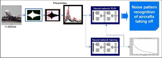 現實世界中根據飛機產生的噪聲頻譜特性來辨別飛機十分復雜,因為背景噪音、天氣、起飛速度和飛機的負載都可能會干擾分析。  近期,采用神經網絡辨別噪音的測量設備已經上市,但這個設備只能用來分辨噴氣飛機、螺旋槳飛機、直升機和背景噪音。 因此 我們決定創建一個計算模型來測量和分析噪音。  我們的系統只需采集飛機起飛24秒內產生的噪音,就能夠正確識別飛機。