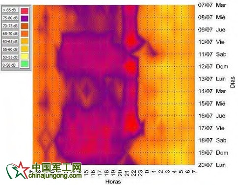 圖2. 墨西哥城城市廣場兩周時間的噪音情況