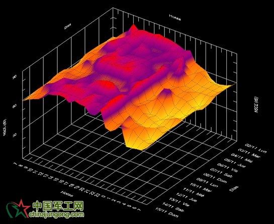 圖6. 3D噪音地圖顯示噪音級別、時間、日期和幅度